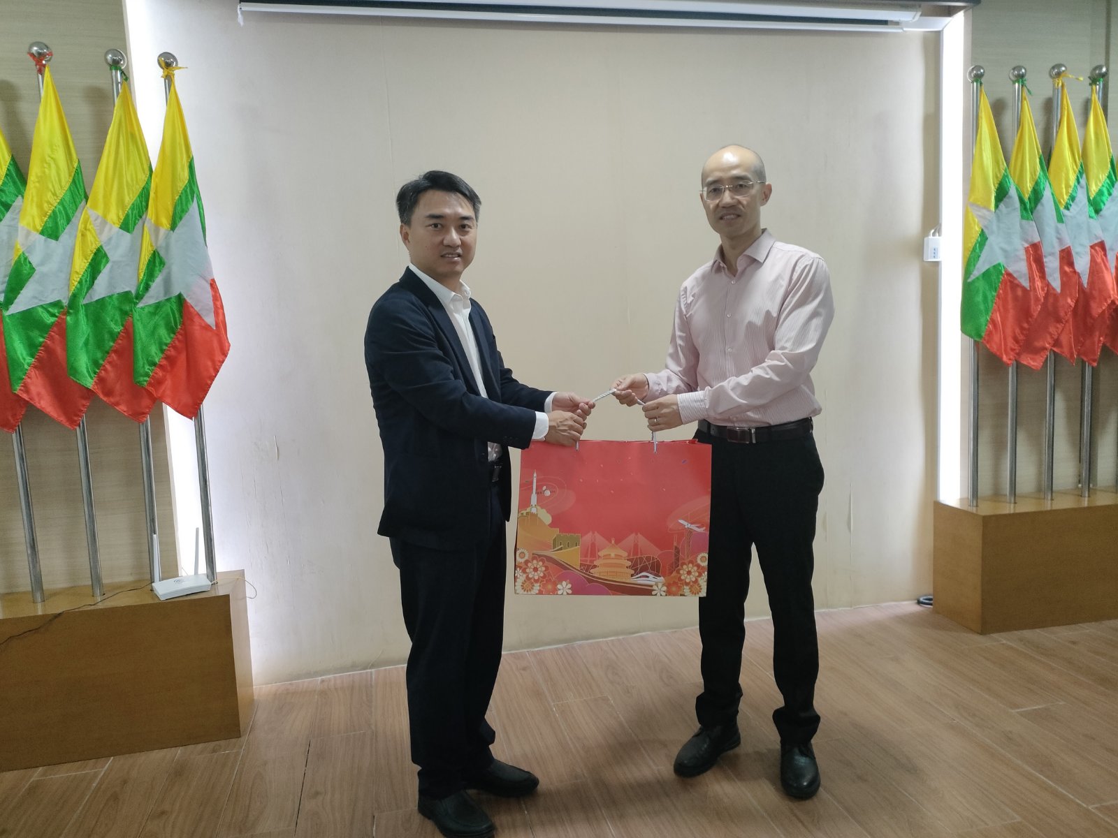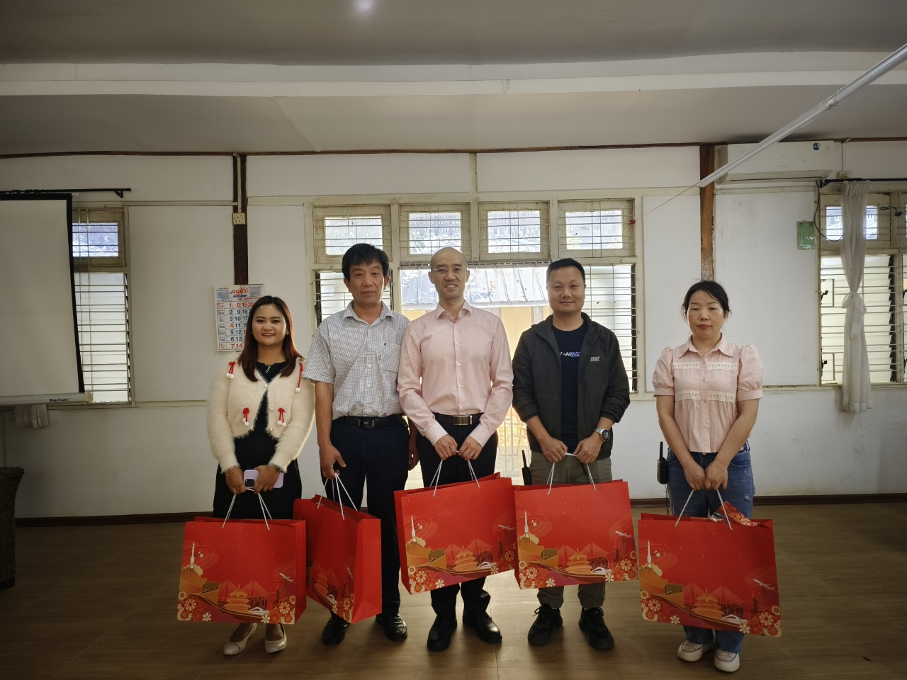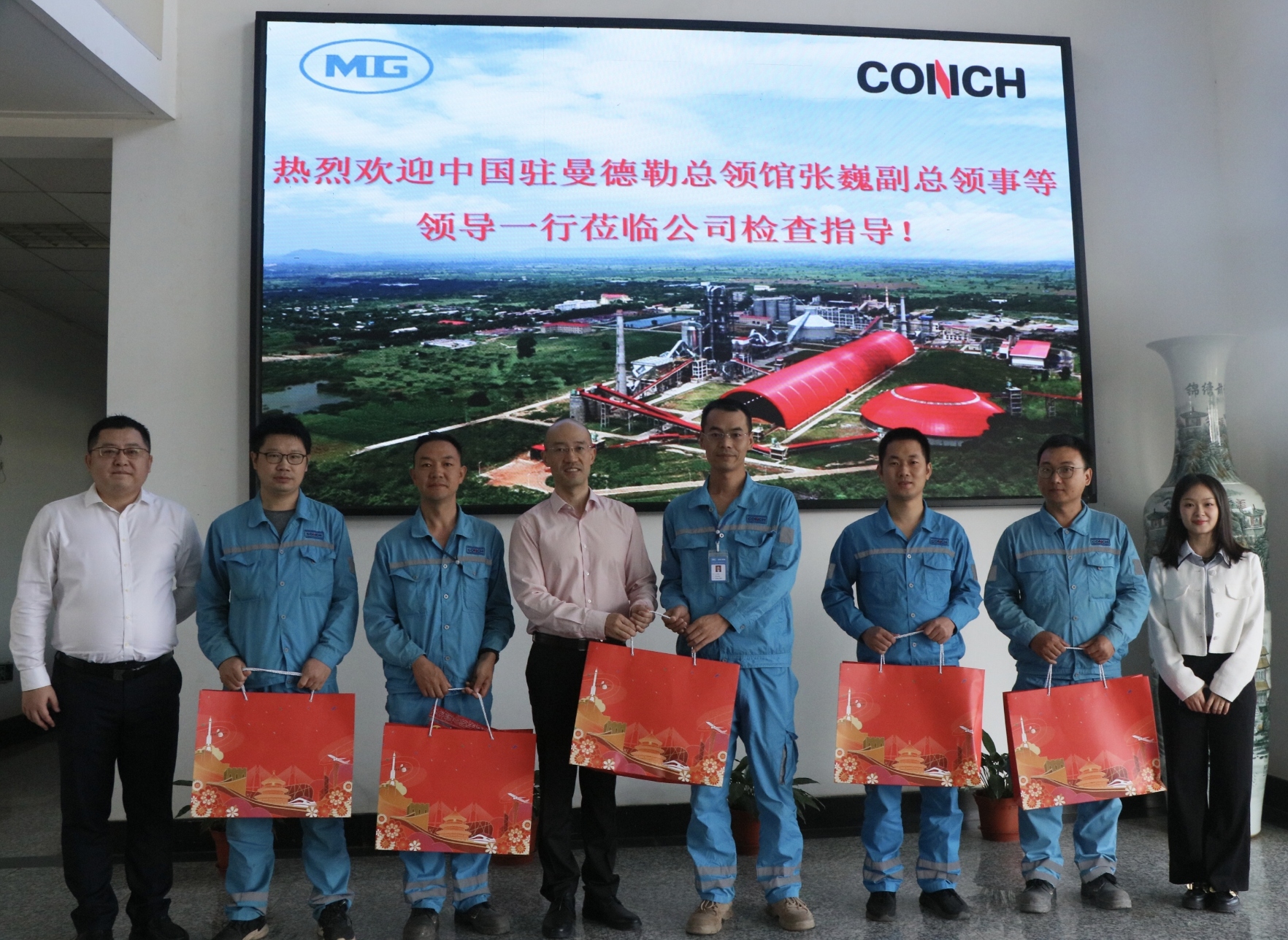 1月30日,中国驻曼德勒总领事馆张巍副总领事在新春佳节来临之际率队走访缅甸海螺水泥有限公司、中国中材国际工程股份有限公司、缅甸旦多淼有限公司、凯盛制衣公司等缅北中资企业并赠送“春节包”。